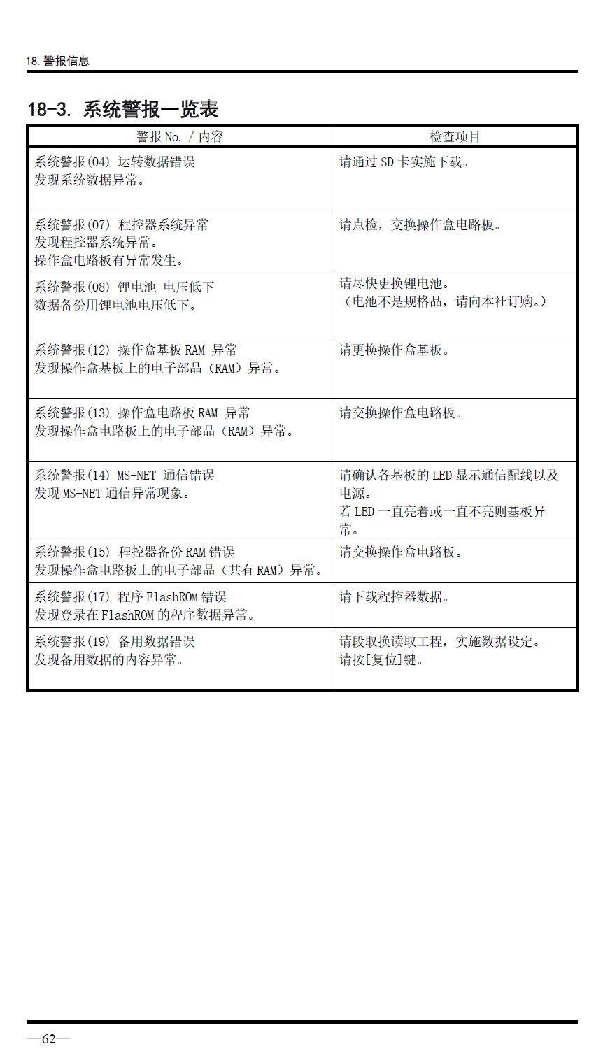 ESW-III,EG系列警報解除一般說明